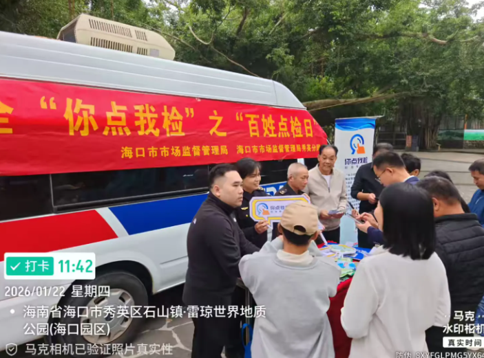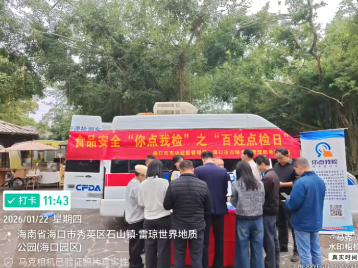 春节前夜,加强人平易近群众对年货食物平安的获得感和对劲度,海口市市场监视办理局正在区火山口地质公园开展年货购食物平安“你点我检”之“苍生点检日”宣传勾当。