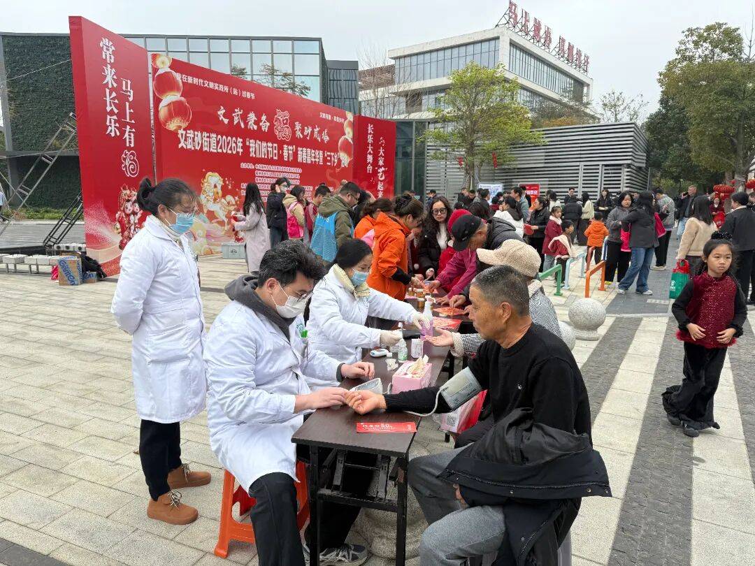 勾当现场,长乐区文联专家们挥毫泼墨、笔走龙蛇,以丰满的热情书写一幅幅寄意吉利的对联;除了写对联,大师亲手拓印“福”字,正在脱手体验中感触感染保守文化的魅力。文武砂卫生院组织医护人员来到勾当现场开展免费义诊勾当,医护人员耐心详尽地为群众丈量血压、检测血糖,供给科学饮食、用药指点和健康征询办事。