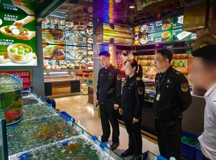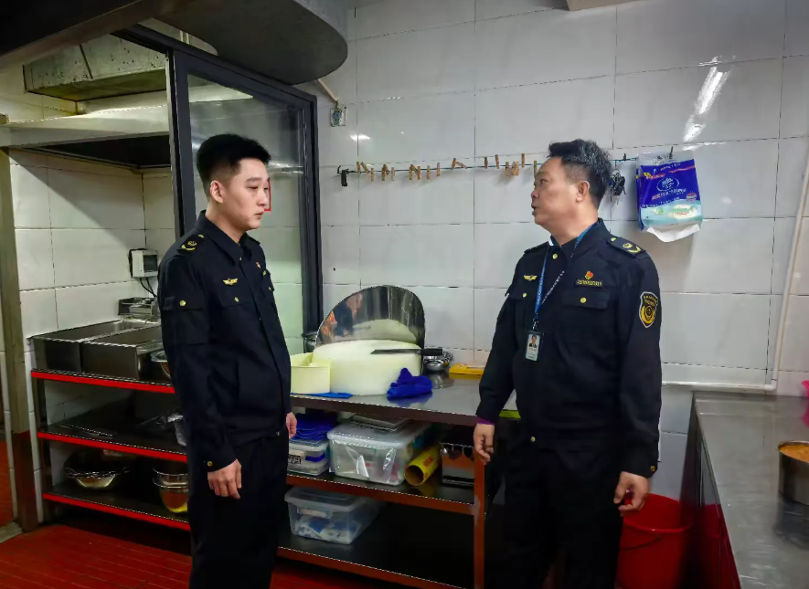 副局长袁崇滔带队查抄辖区衔接大年夜饭的餐喝酒店、大型餐厅和特色餐饮店,沉点查抄餐饮单元天分证照、从业人员健康办理、原材料进货检验、索证索票轨制落实、后厨卫生、生熟分隔加工、餐器具清洗消毒、食物留样等环境,峻厉查处利用过时变质食材、来历不明原料、操做流程不规范等违法违规行为。